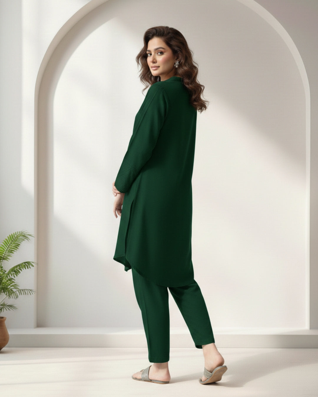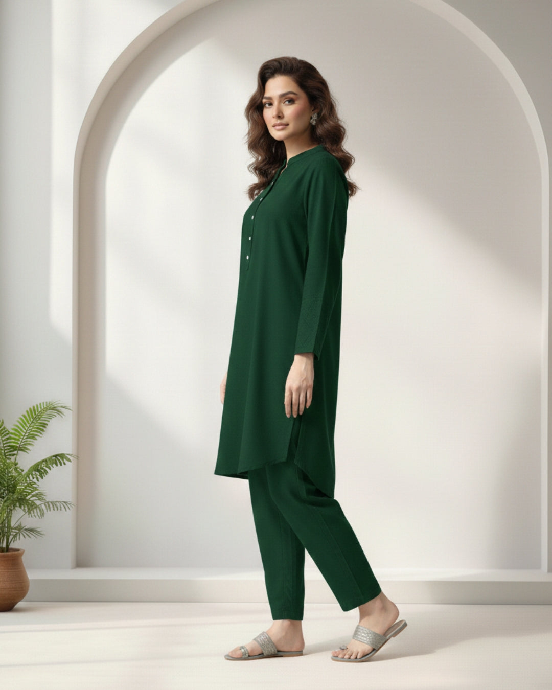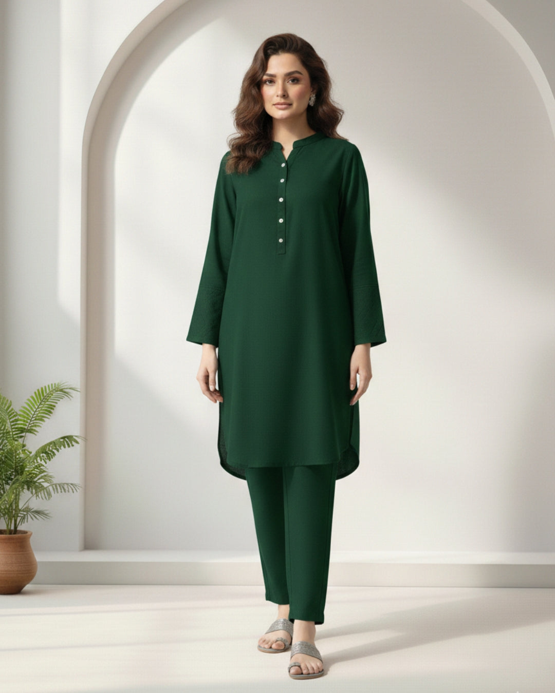 Embrace deep, jewel-toned elegance with this Emerald Forest kurta. Tailored from high-grade cotton, this piece focuses on a clean, vertical silhouette that elongates the frame. The minimalist button-down placket and refined stand collar make it a powerhouse piece for your capsule wardrobe.