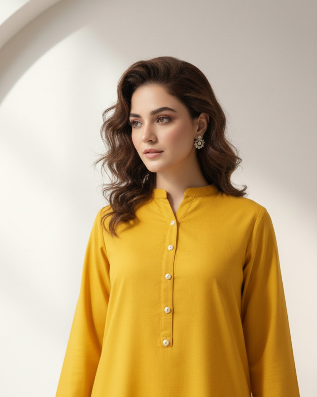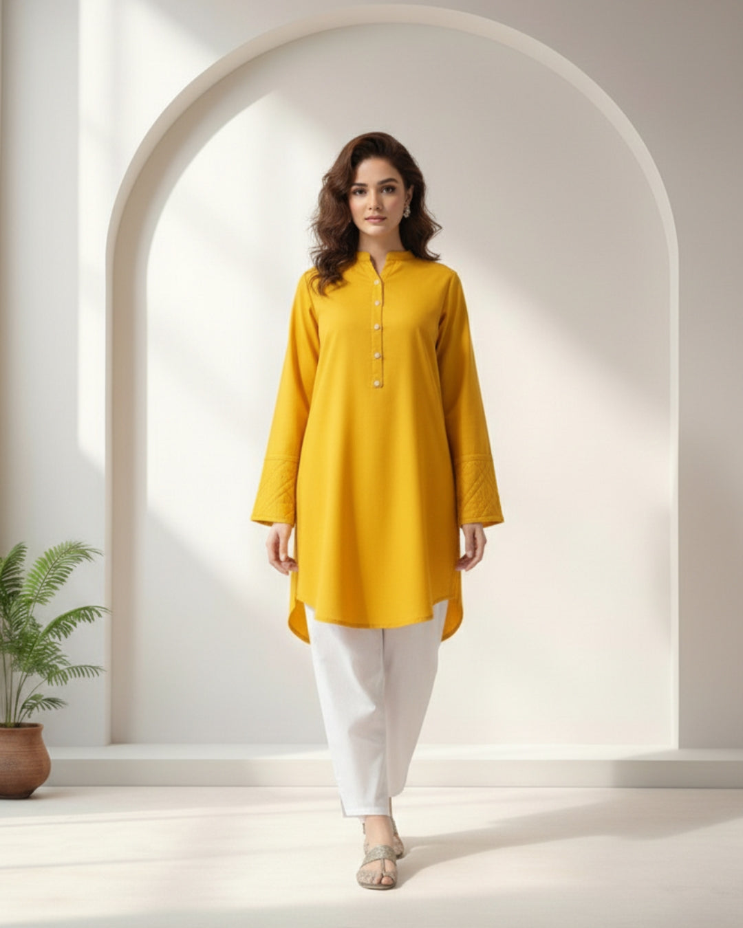 Brighten your daily rotation with the Saffron Glow kurta. This vibrant mustard-yellow piece is designed to stand out while keeping you comfortable. Featuring signature quilted sleeve detailing and a smooth button placket, it’s the perfect pop of color for the modern woman on the go.